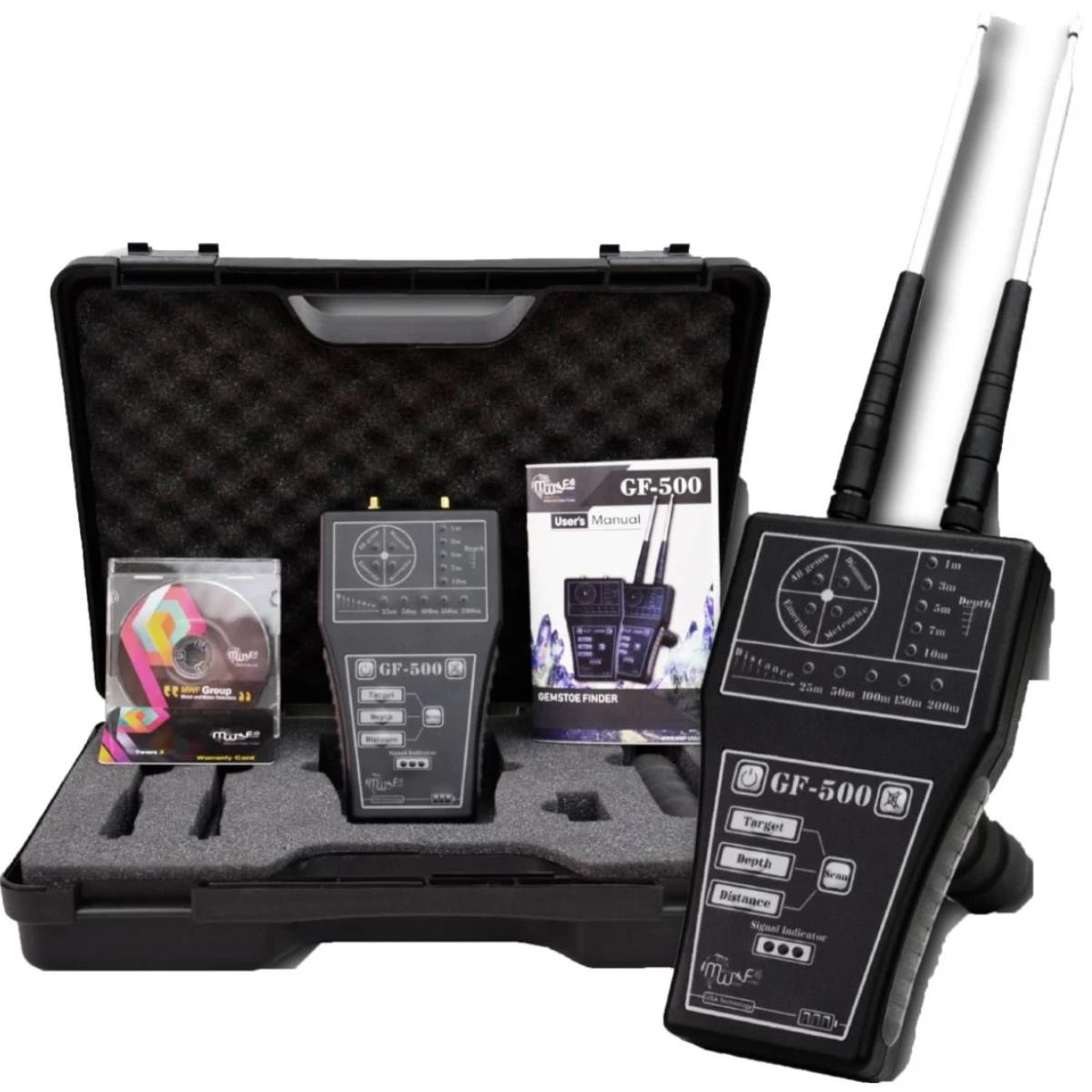 GF-500, cihazın 200 metre mesafeden ve 360 derecelik bir açıdan hassas kontrol özelliği ile hedefleri konumlandırabildiği, elmas ve değerli taşlar gibi yer altındaki hedef konumu titizlikle belirleyip tespit etmesini sağlayan yüksek sert frekans dalgaları sunar. Birkaç seviyeli arama mesafesinin olduğu yerlerde, kullanıcı ihtiyacına göre yatay taramaya ayarlayabilir, GF-500 cihazındaki arama derinliği, arama derinliğinde hassas kontrol imkanı ile yeraltında 10 metreye kadar ulaşılabilir.